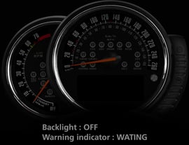 限定仕様として製作したマットブラックのクラスターに施された緻密なファイバーレーザー加工は、“ 色褪せたホワイトレタリング ”をイメージしたアースカラーとしています。70年代の英国車のインパネを彷彿とさせるその風合いは、現代まで連綿と受け継がれるローバー・ミニの魂を想起させます。ELバックライトを採用したmodel-VINTAGEとの組み合わせにより、夜間には華やかな表情を見せてくれます。10セット限定生産品となりますので完売の際はどうぞご容赦下さい。