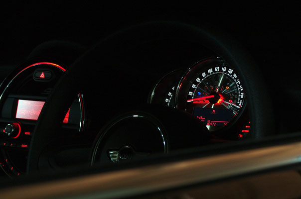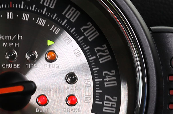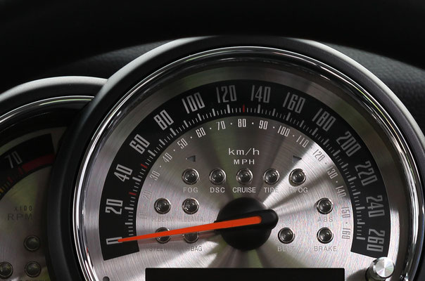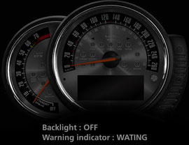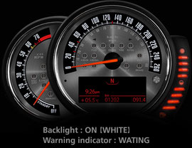 旧MINIのスミスメーターをモチーフとしたmodel-VINTAGEに、新開発のメタルクラスターをセットにしたプレミアム仕様です。旧MINIの特徴でもあった「ゲージ内インジケーター」という特徴をパイロットランプという形で再現することにより「ネオ・クラシカル」のムードと趣を醸し出します(この「スピン加工ステンレスへの特殊マーキング+パイロットランプ」のモデルはF56MINI用ゲージ発売記念特別モデルとして2014年に限定生産されたものです)。
