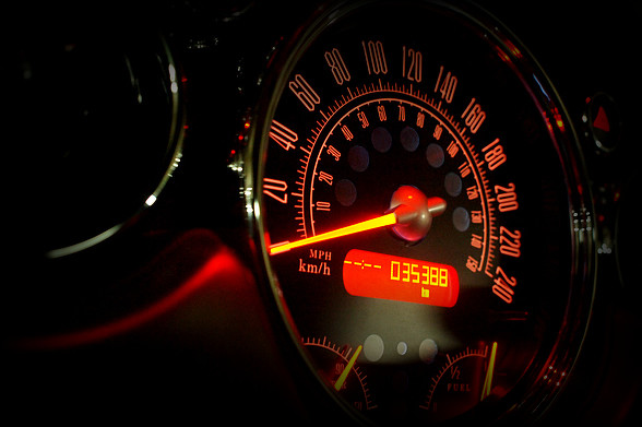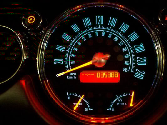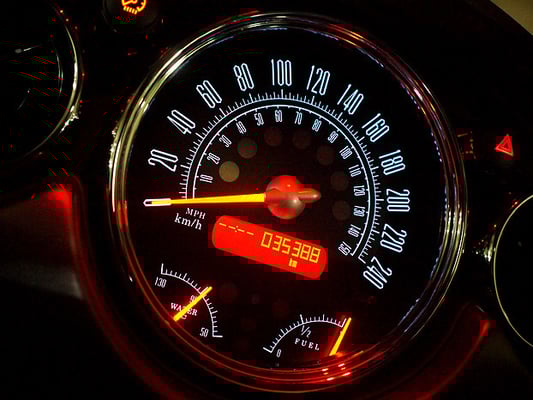 ブラック盤面中央部に配された細かなスケール(目盛り)は、デザイン上の美しさ以前に視認性の面で一役買います。このmodel-1002は、実用性と機能美を併せ持つ「航空機のコクピット」を彷彿とさせます。キロ表示に加えてマイル表示を併記することにより、計器としての魅力を一層引き立たせています。